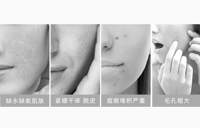 皮膚缺水缺氧是會引起很多的肌膚問題,氣候天氣影響、熬夜等不好的作息習慣,十天半月不保養的護膚習慣,等等情況都有可能會導致肌膚缺水缺氧的情況越來越嚴重,后期肌膚甚至會變黯黃沒有血色、色素堆積、眼圈泛黑、肌膚干枯、細小皺紋滋生,肌膚出現提前衰老現象。