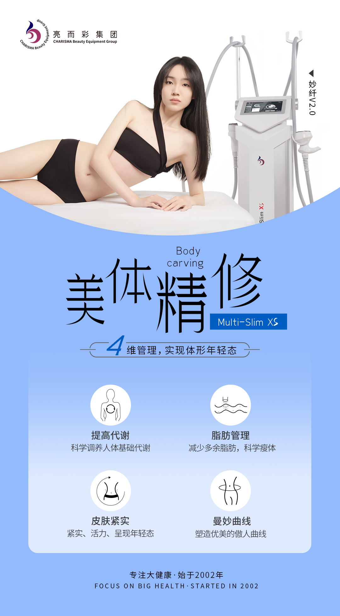 在亮而彩體齡雕塑系統內的妙纖大師、妙纖V2.0設備,可以通過改變脂肪生存環境,破壞變異脂肪、捏脂、收緊,以及消耗脂肪、鍛煉易瘦體質等,增設“少女背、小蠻腰、微笑臀、少女臂、漫畫腿”等多項品項,從而為終端體驗客戶打造健康體態,進行美體精修。